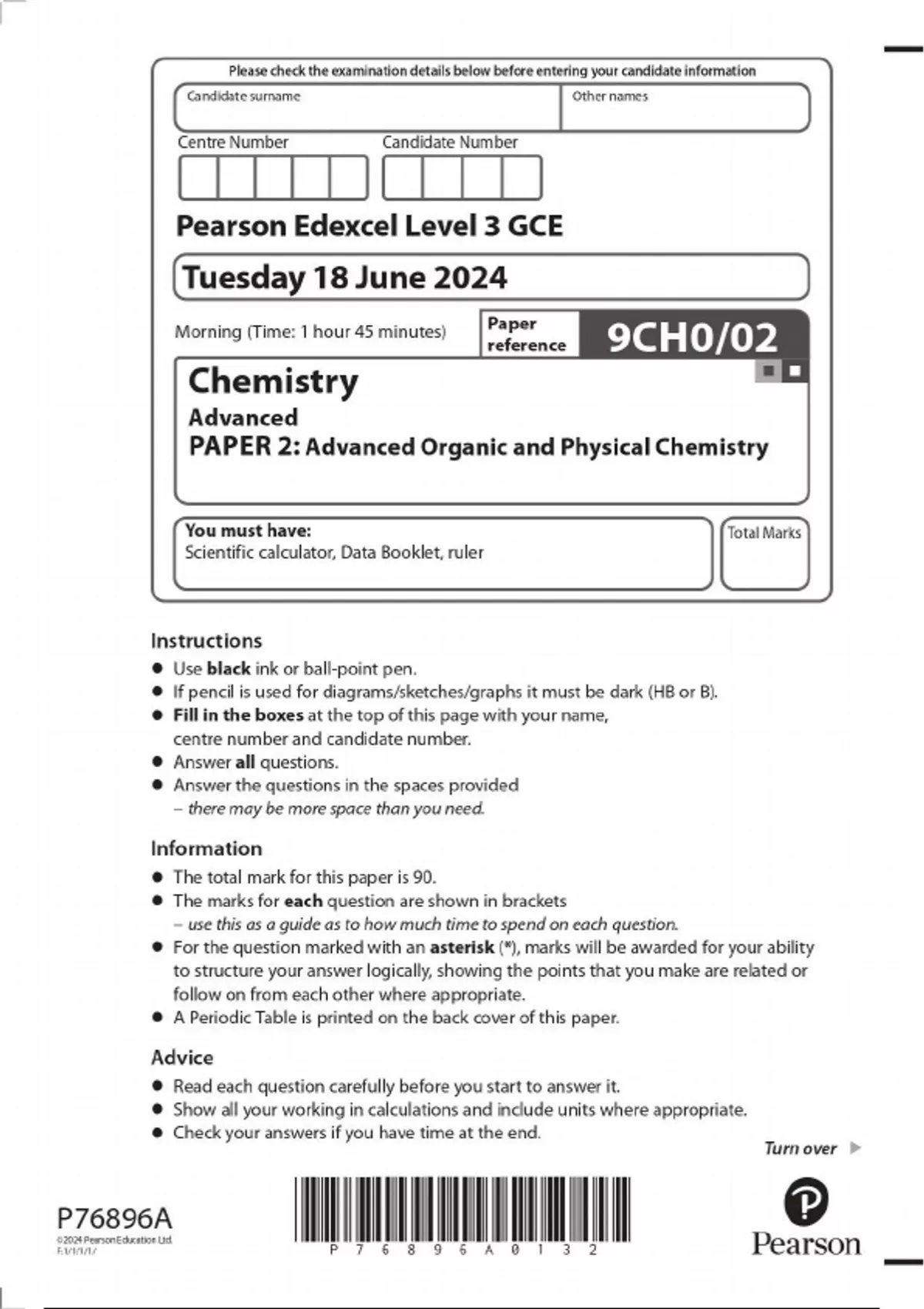 A-Level EDEXCEL 2025 Chemistry Paper 2