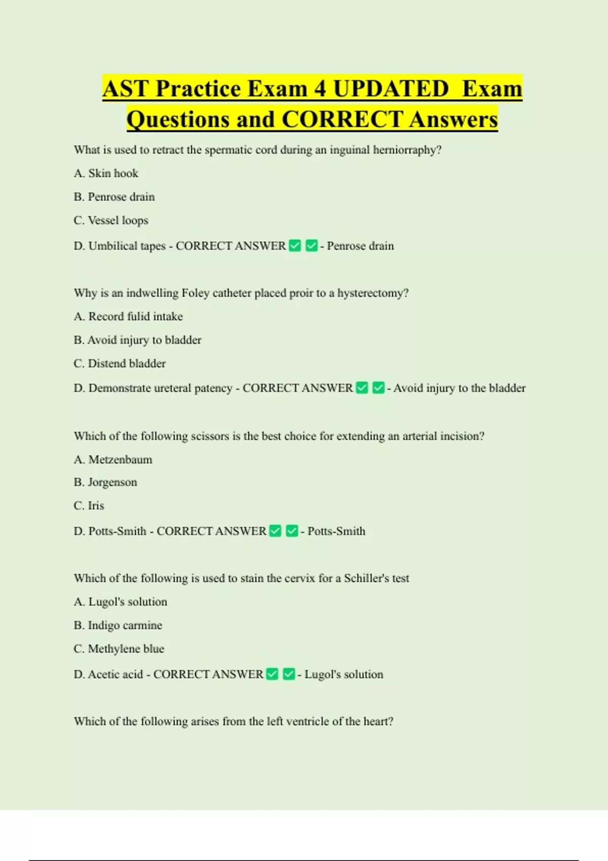 AST Practice Exam 4 UPDATED Exam Questions and CORRECT Answers