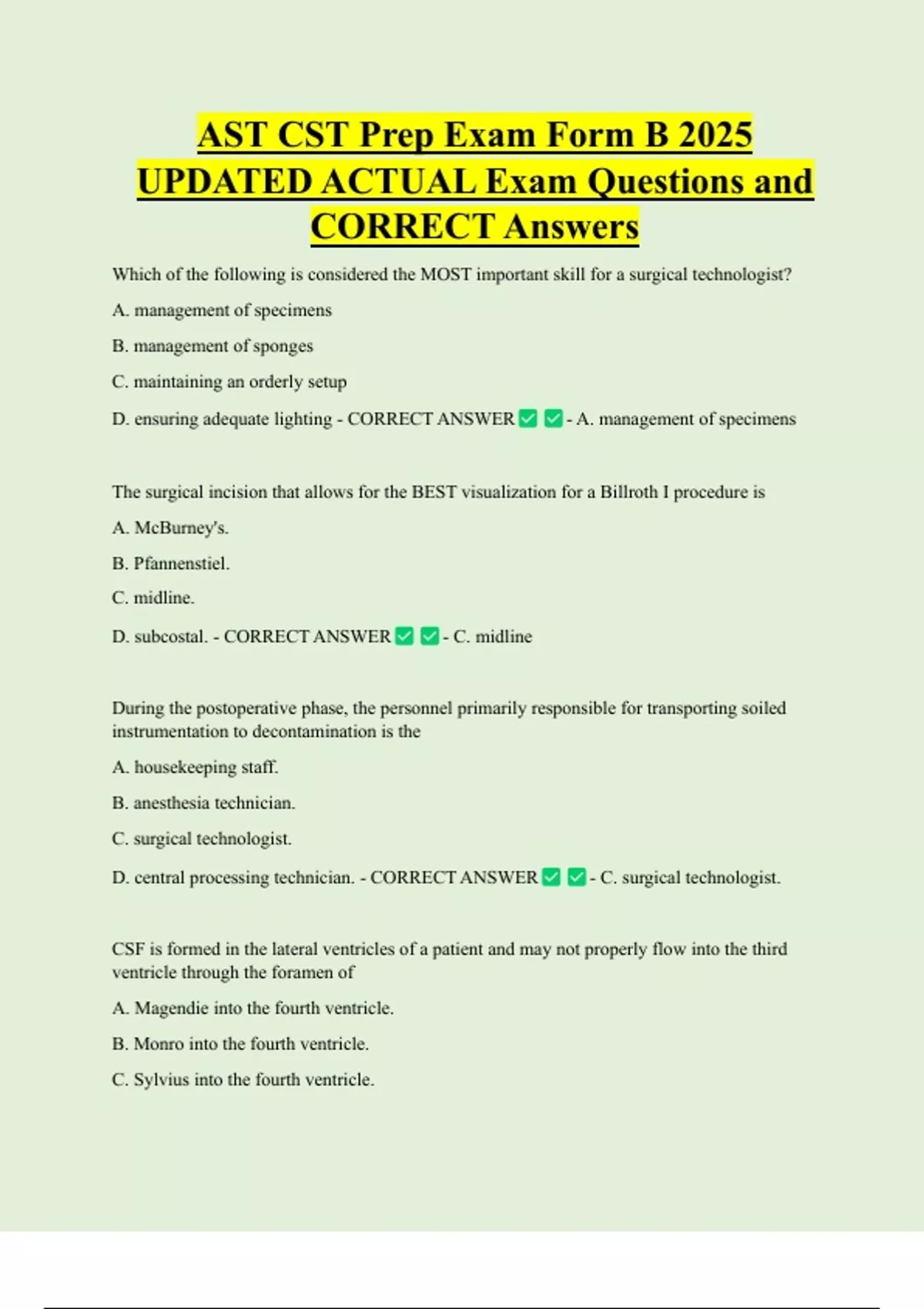 D. central processing technician. - CORRECT ANSWER - C. surgical technologist.