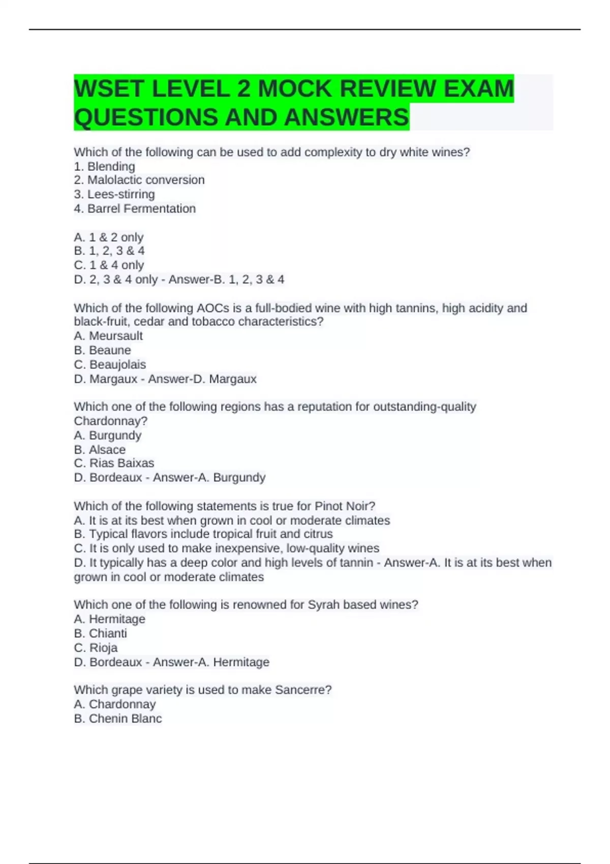 WSET LEVEL 2 MOCK REVIEW EXAM