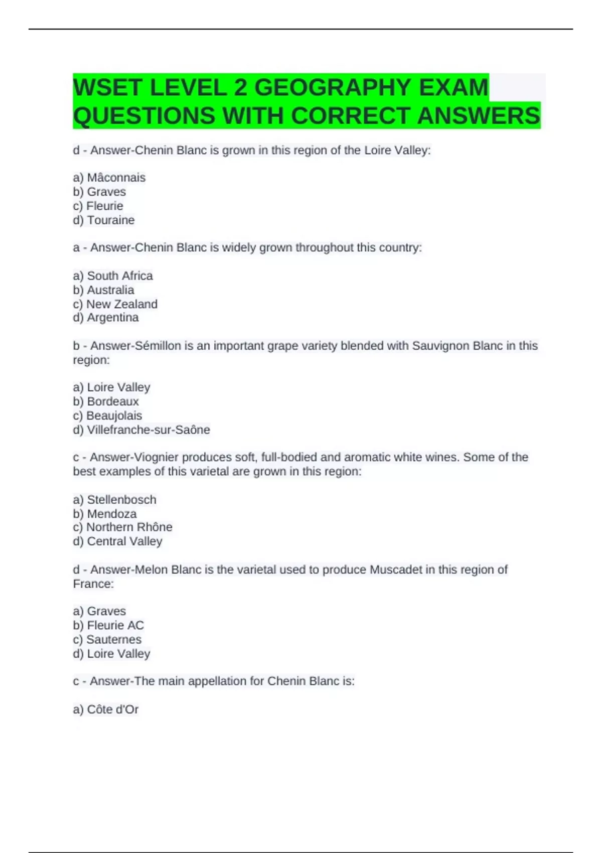 WSET LEVEL 2 GEOGRAPHY EXAM QUESTIONS WITH CORRECT ANSWERS