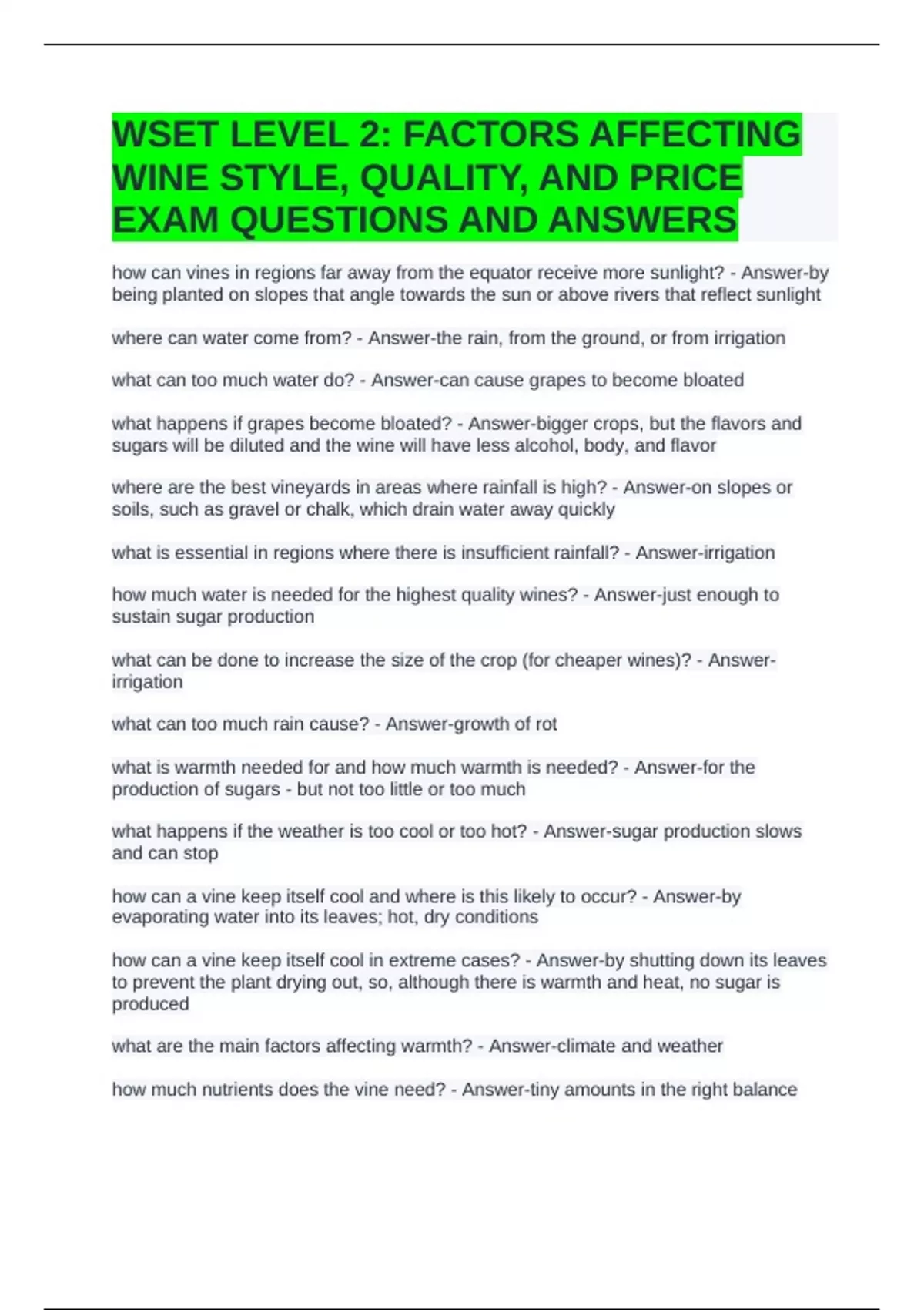 WSET LEVEL 2: FACTORS AFFECTING