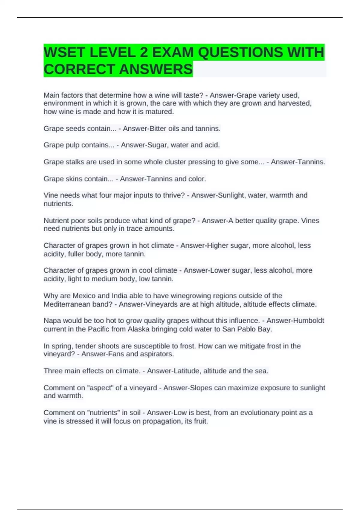 WSET LEVEL 2 EXAM QUESTIONS WITH