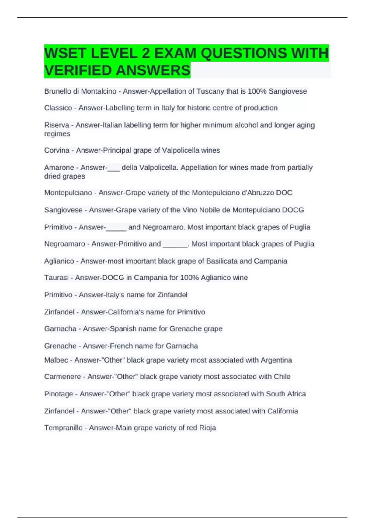 WSET LEVEL 2 EXAM QUESTIONS WITH