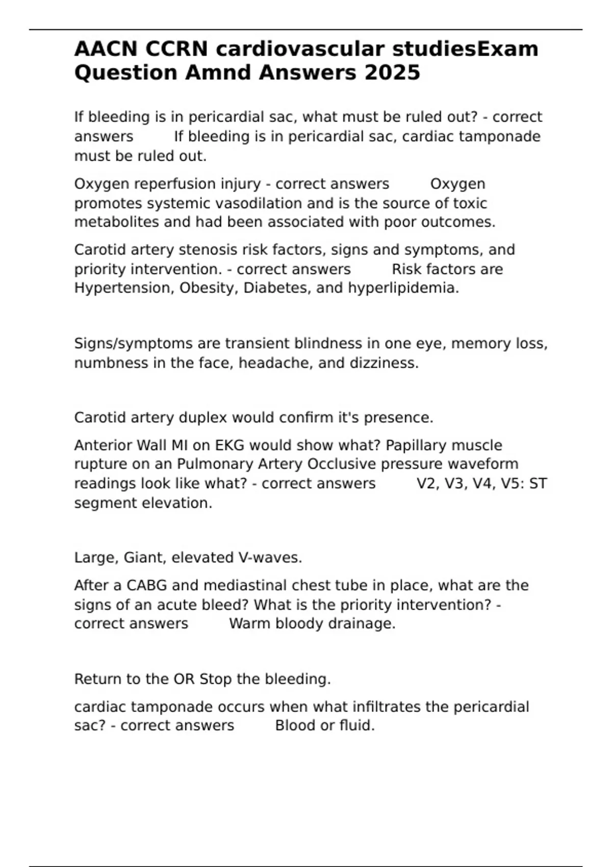 CCRN Questions With Correct Answers 2025