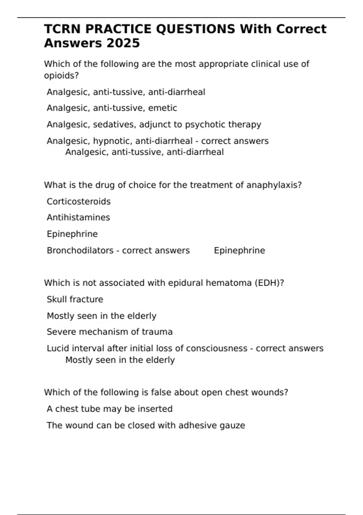 Analgesic, hypnotic, anti-diarrheal - correct answers