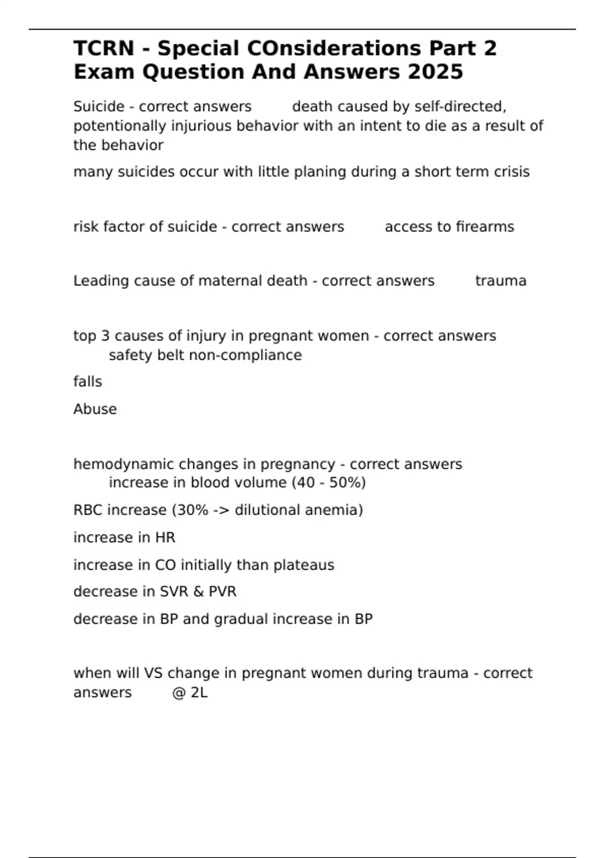 Leading cause of maternal death - correct answers ✅✅trauma