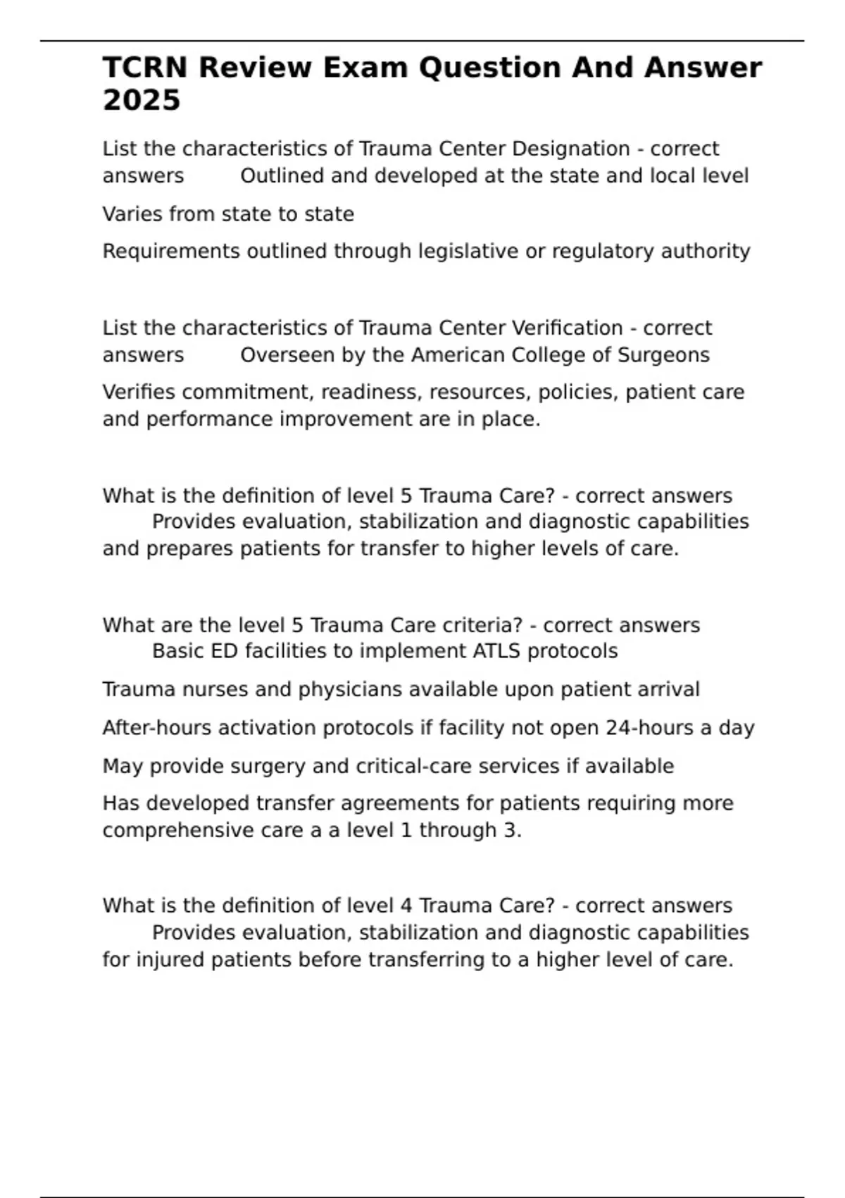 , TCRN Review Exam Question And Answer