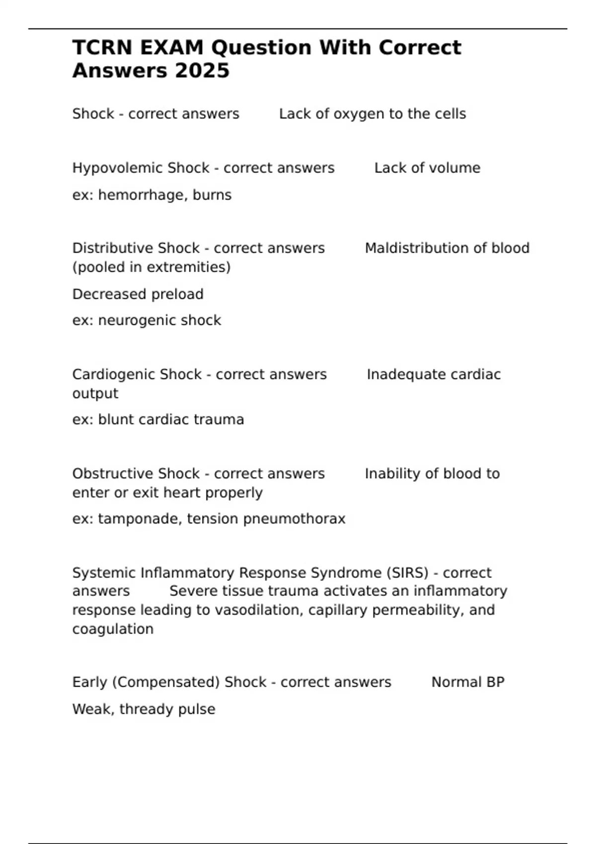 Early (Compensated) Shock - correct answers ✅✅Normal BP