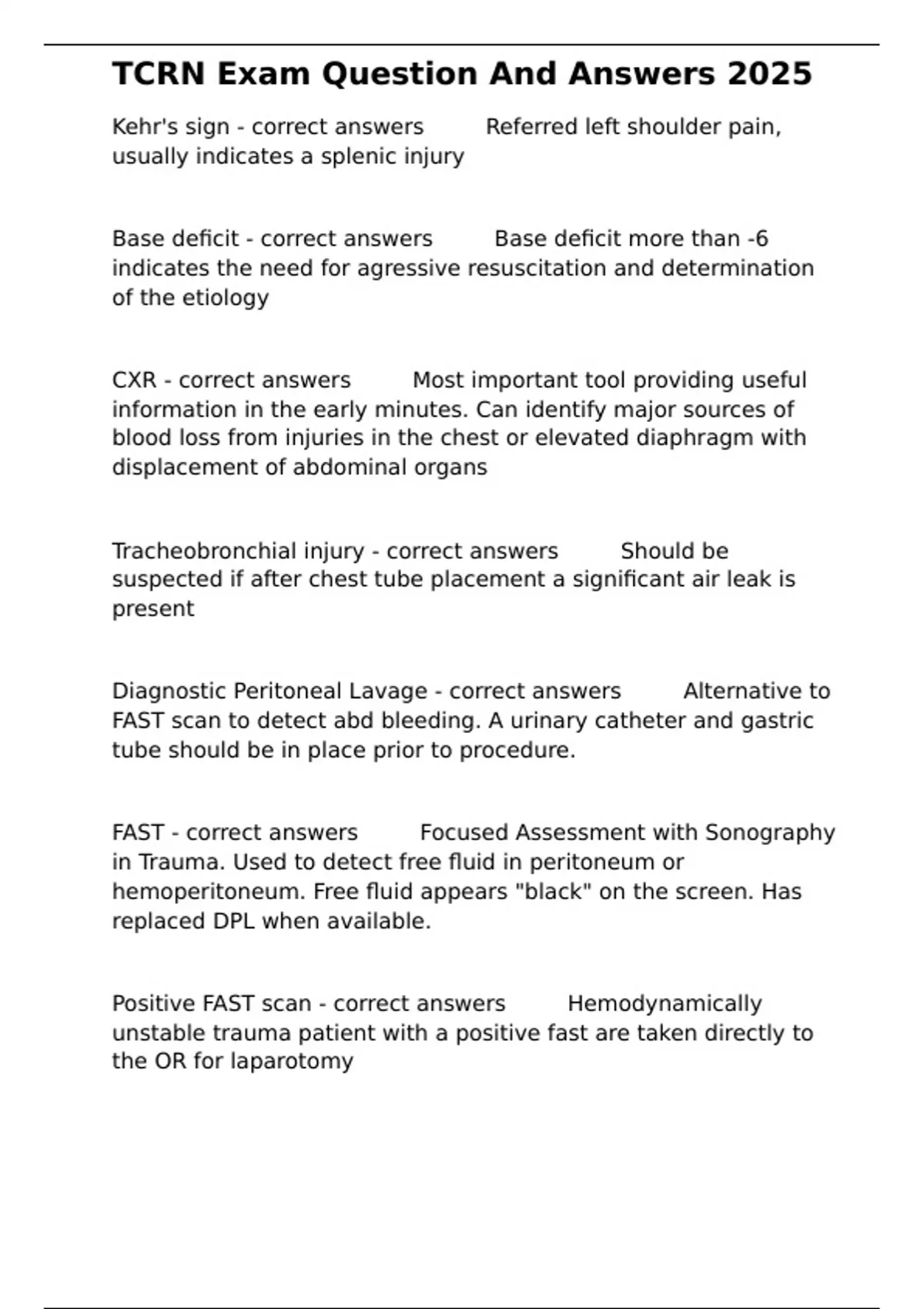 Positive FAST scan - correct answers ✅✅Hemodynamically