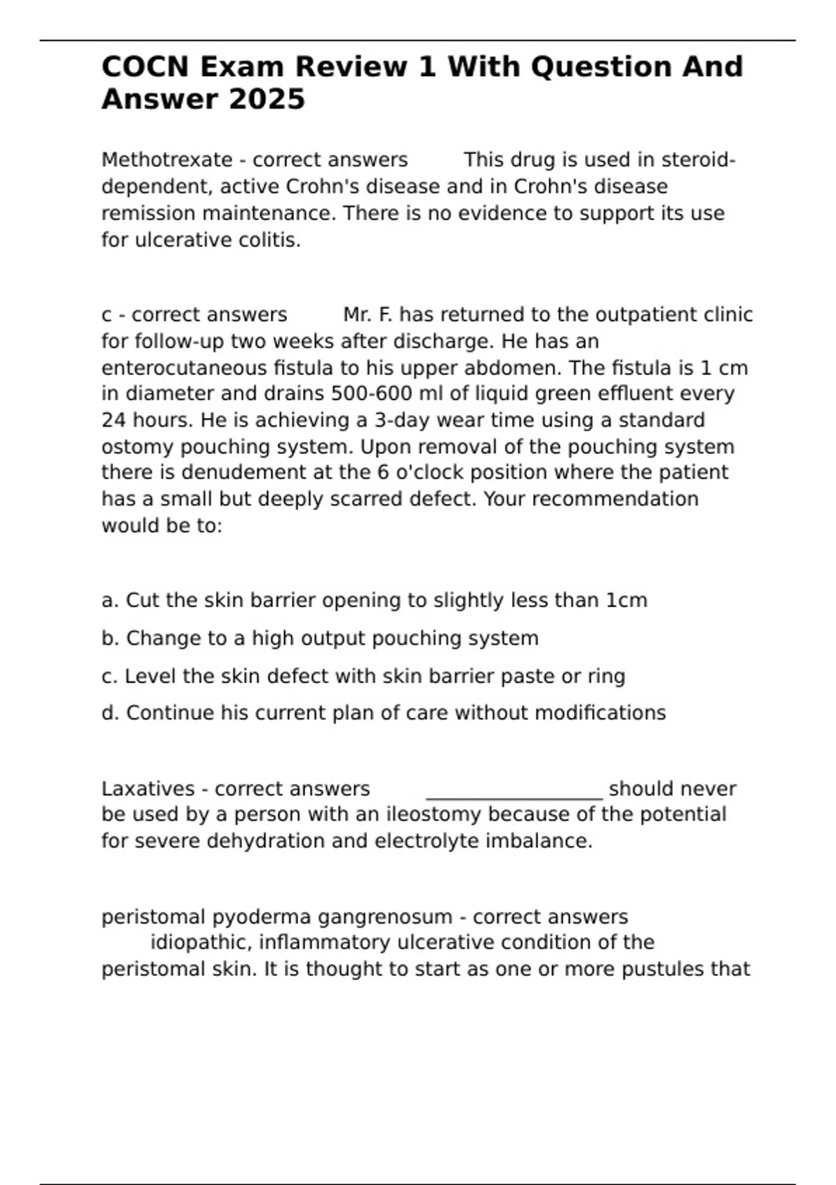 c - correct answers ✅✅Mr. F. has returned to the outpatient clinic