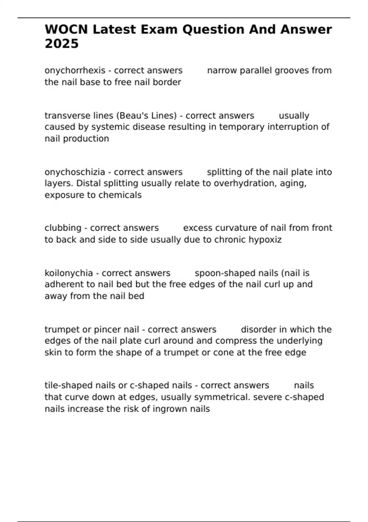 onychorrhexis - correct answers ✅✅narrow parallel grooves from