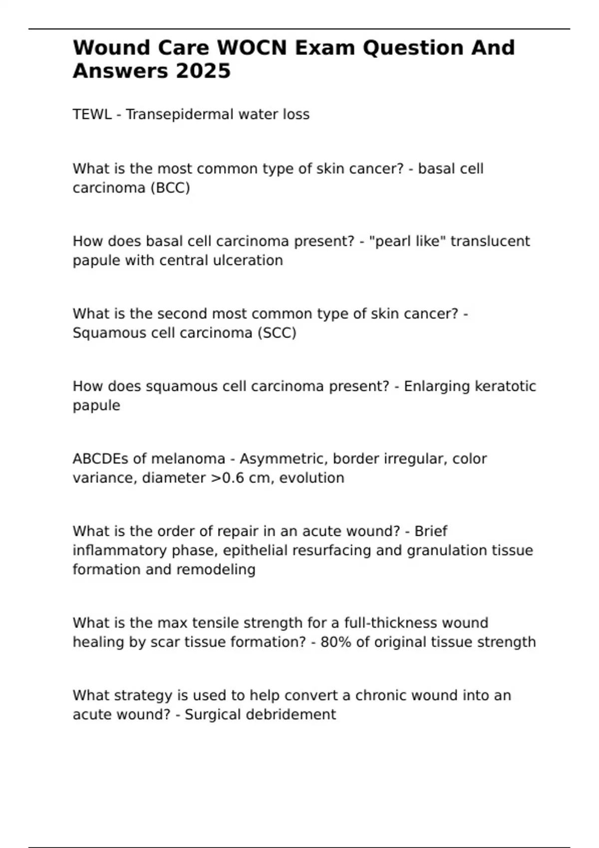 , Wound Care WOCN Exam Question And
