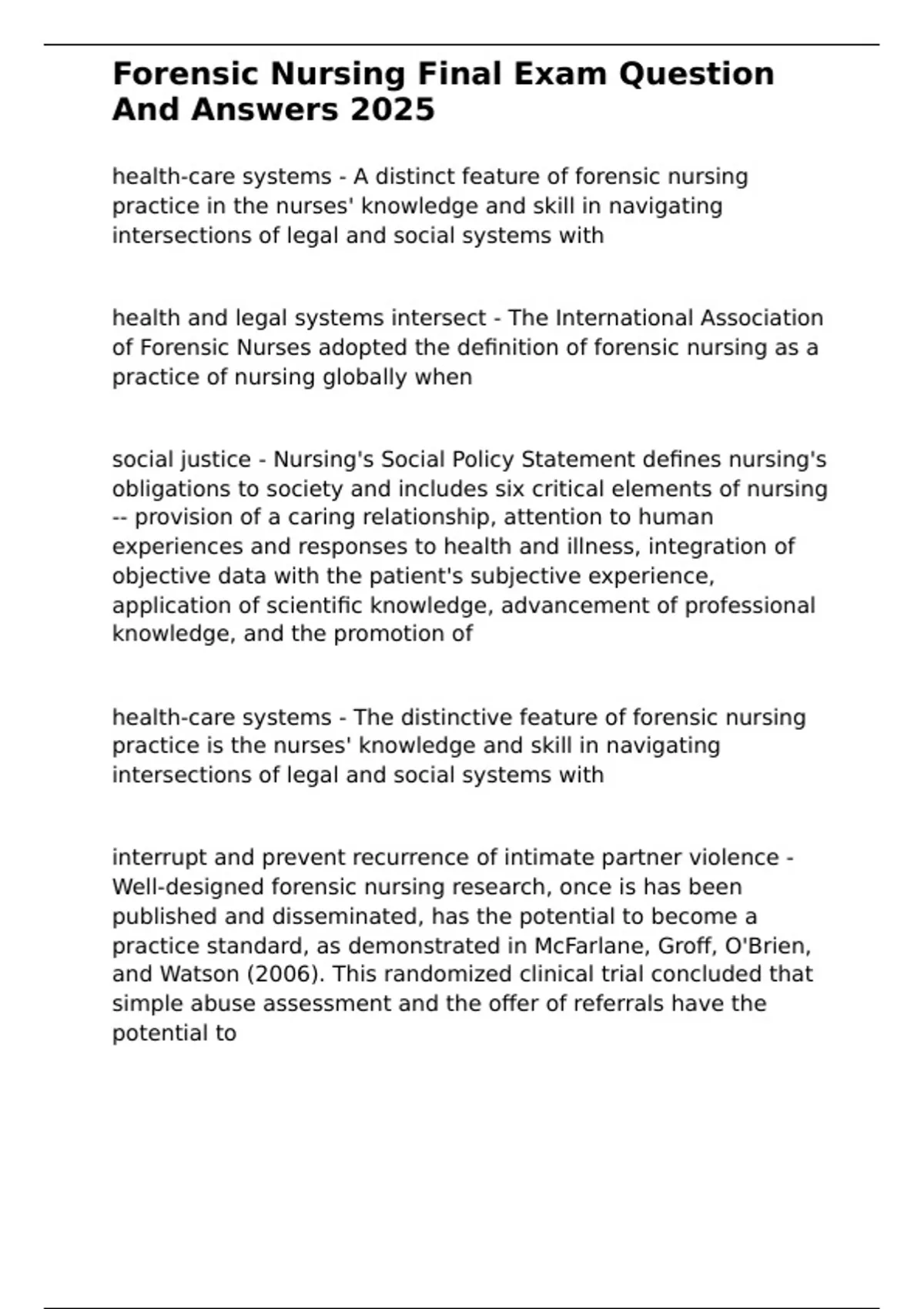 ,Forensic Nursing Final Exam Question