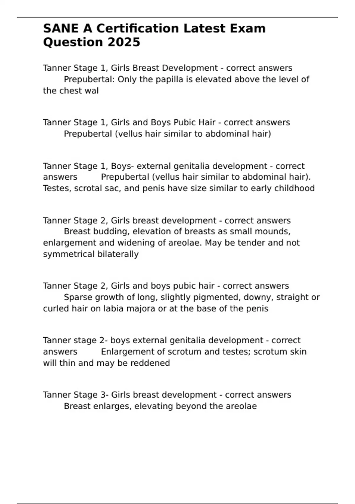 Tanner stage 5- girls and boys pubic hair - correct answers