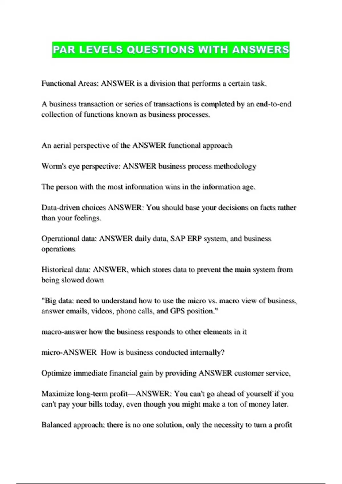Operational data: ANSWER daily data, SAP ERP system, and business