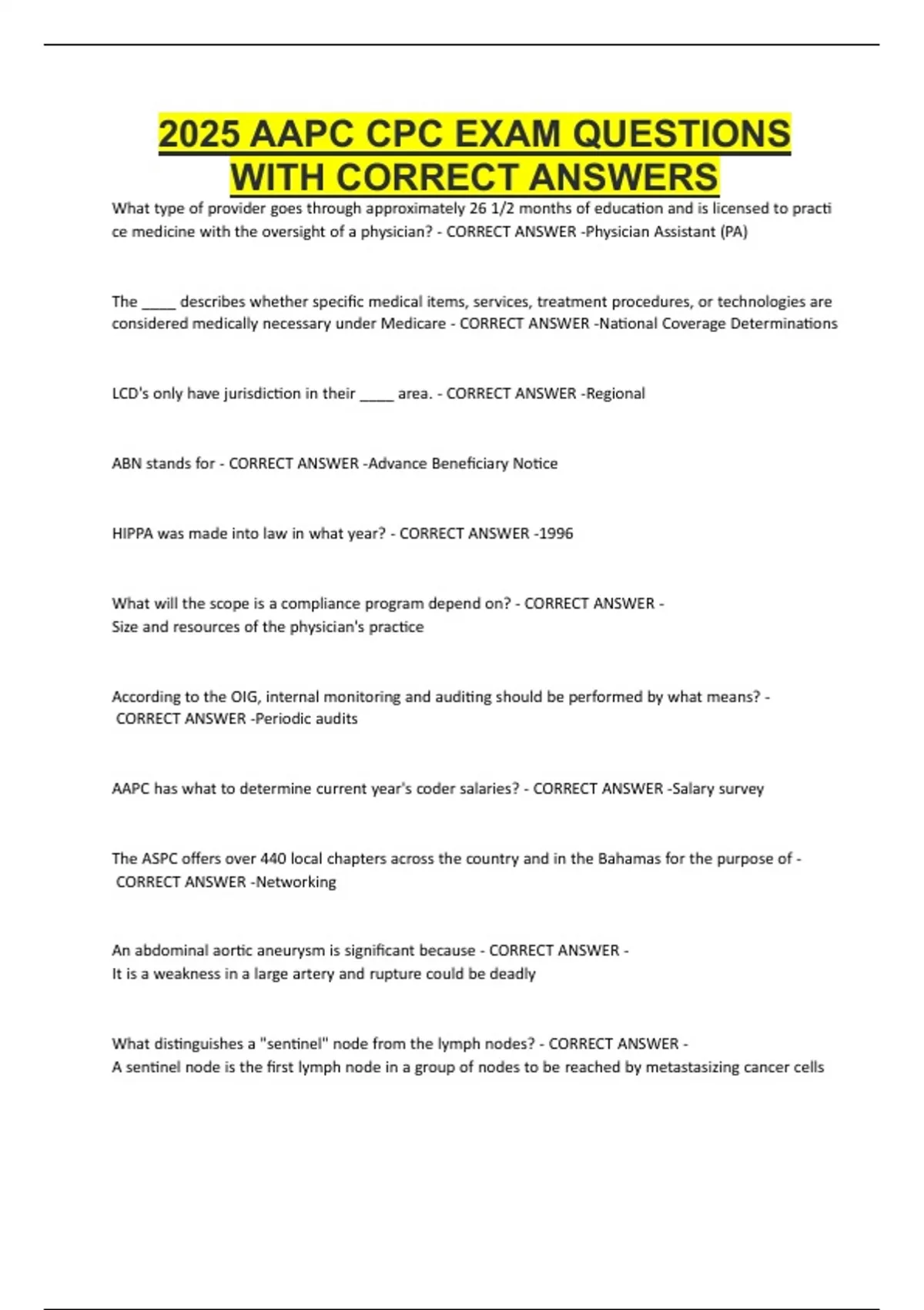 2025 AAPC CPC EXAM QUESTIONS