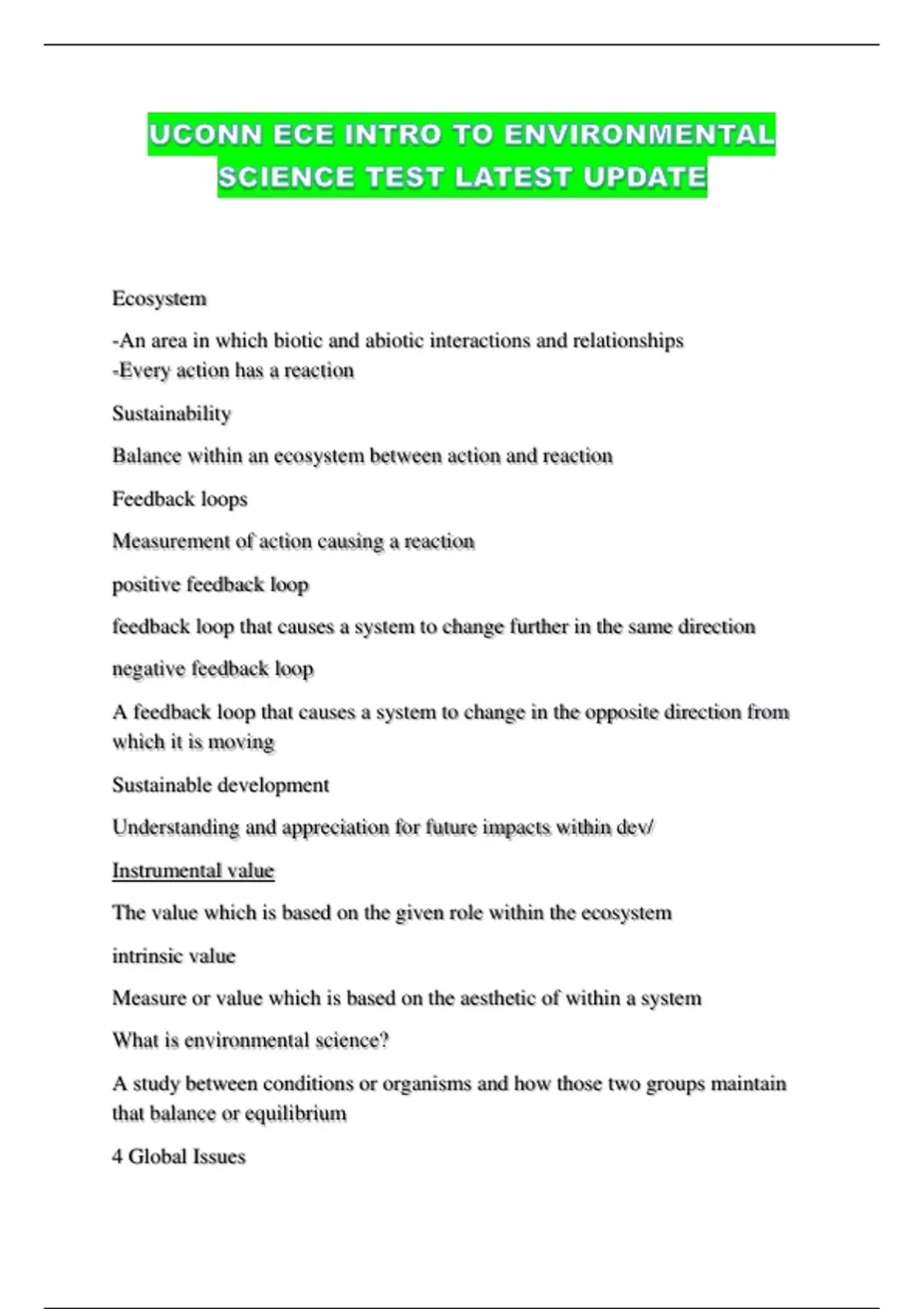 UCONN ECE INTRO TO ENVIRONMENTAL SCIENCE TEST LATEST UPDATE...