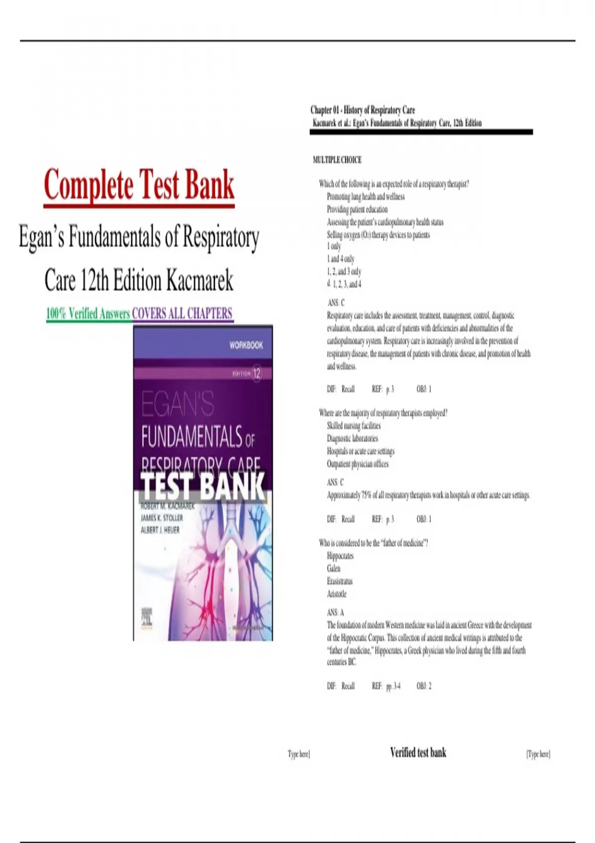100% Verified Answers COVERS ALL CHAPTERS Respiratory care includes the assessment, treatment, management, control, diagnostic