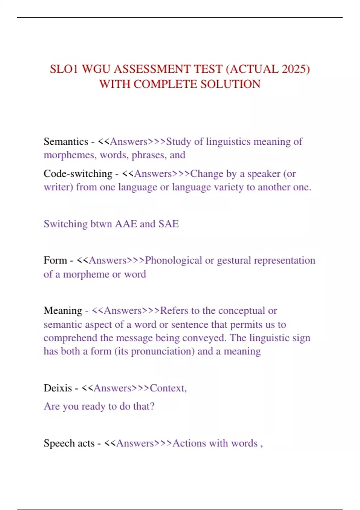 Semantics - <<Answers>>>Study of linguistics meaning of