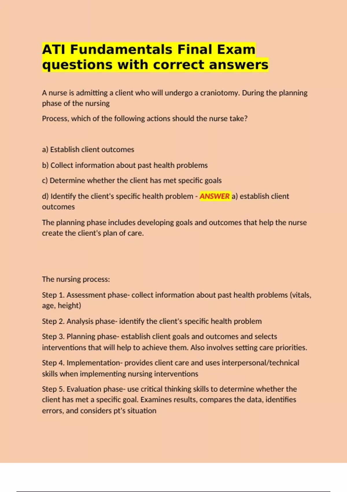 d) Identify the client's specific health problem - ANSWER a) establish client