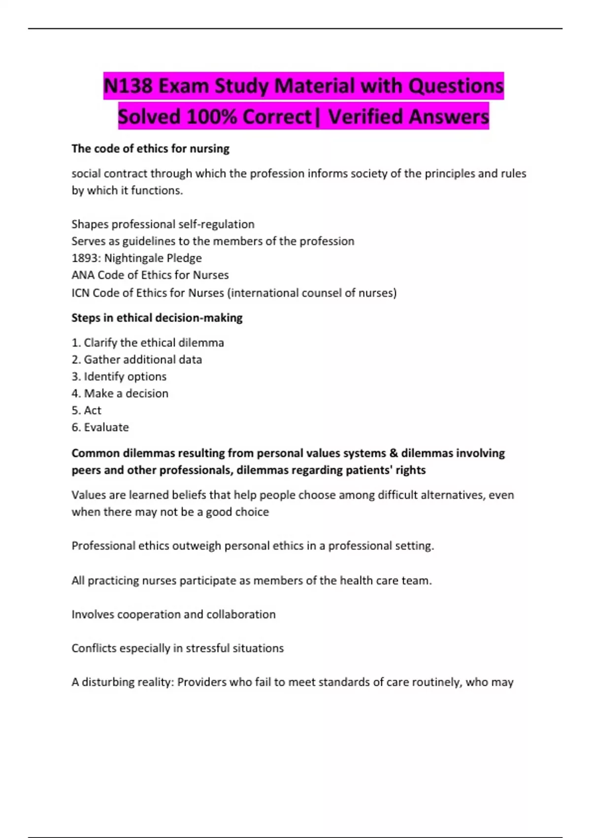 N138 Exam Study Material with Questions