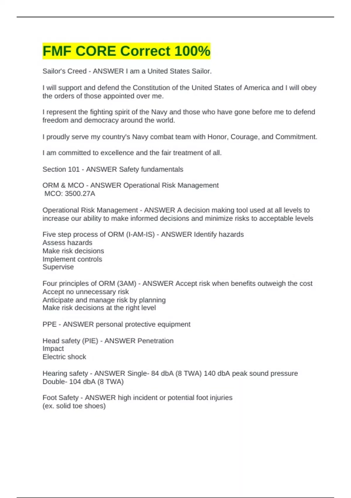 Section 101 - ANSWER Safety fundamentals