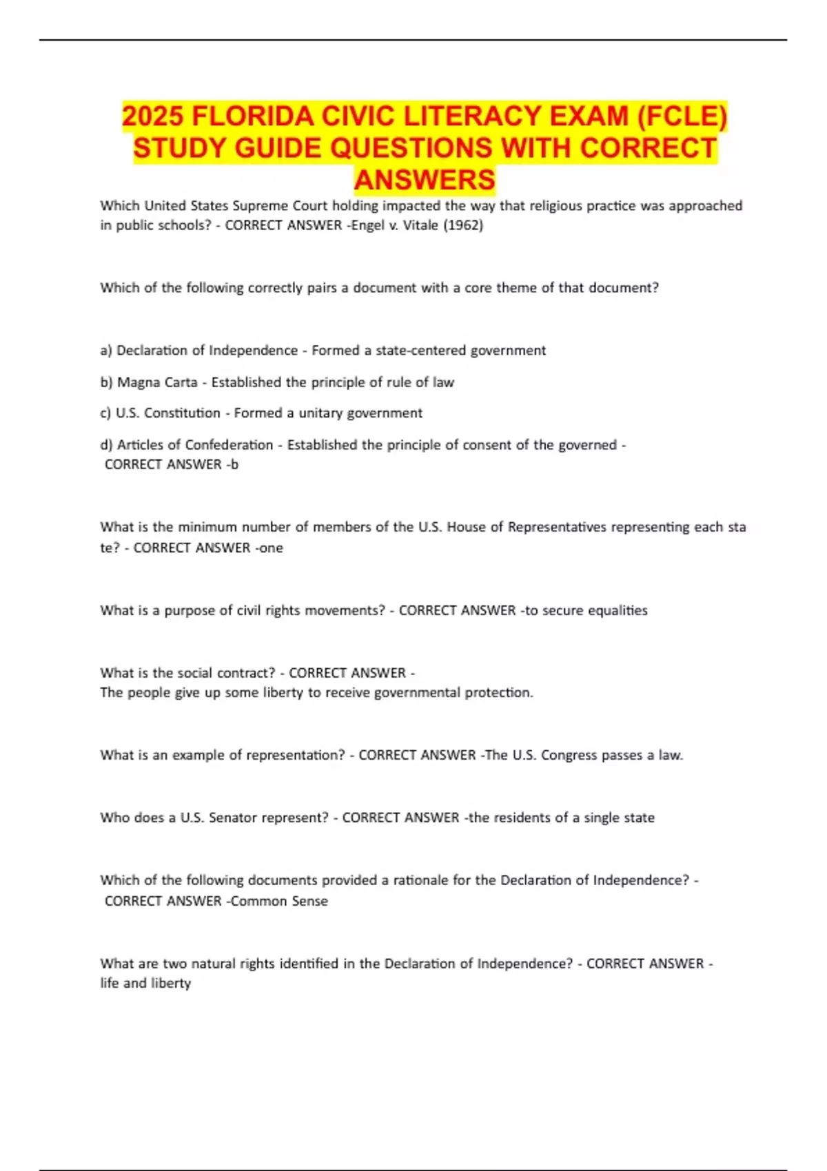 2025 FLORIDA CIVIC LITERACY EXAM (FCLE)