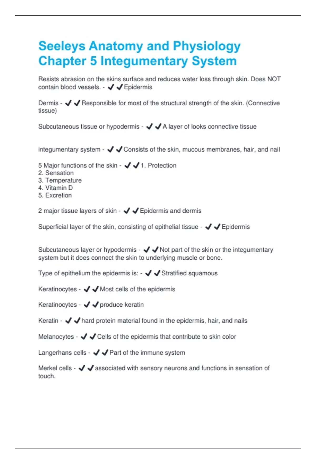 Subcutaneous layer or hypodermis - ✔️✔️Not part of the skin or the integumentary