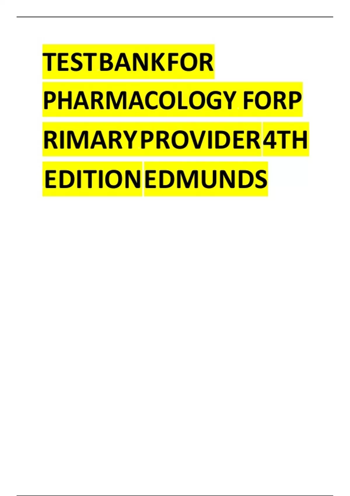 Test Bank for Pharmacology for the Primary Care Provider 4th Edition by Authors: Marilyn Edmunds and Maren Mayhew ISBN 9780323087902 Chapter 1-73 | Complete Guide A+