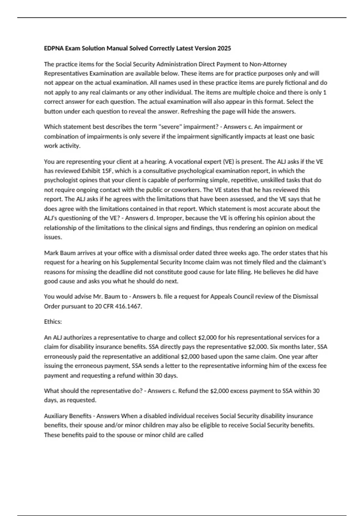 The practice items for the Social Security Administration Direct Payment to Non-Attorney