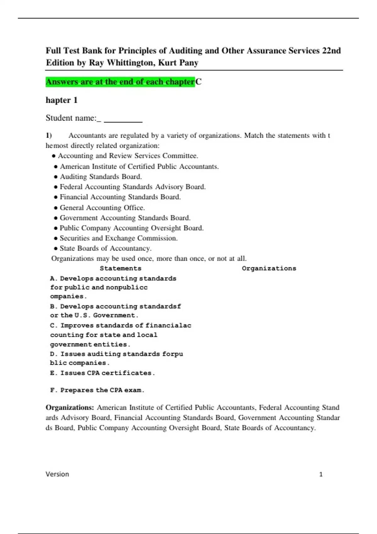 Full Test Bank for Principles of Auditing and Other Assurance Services 22nd