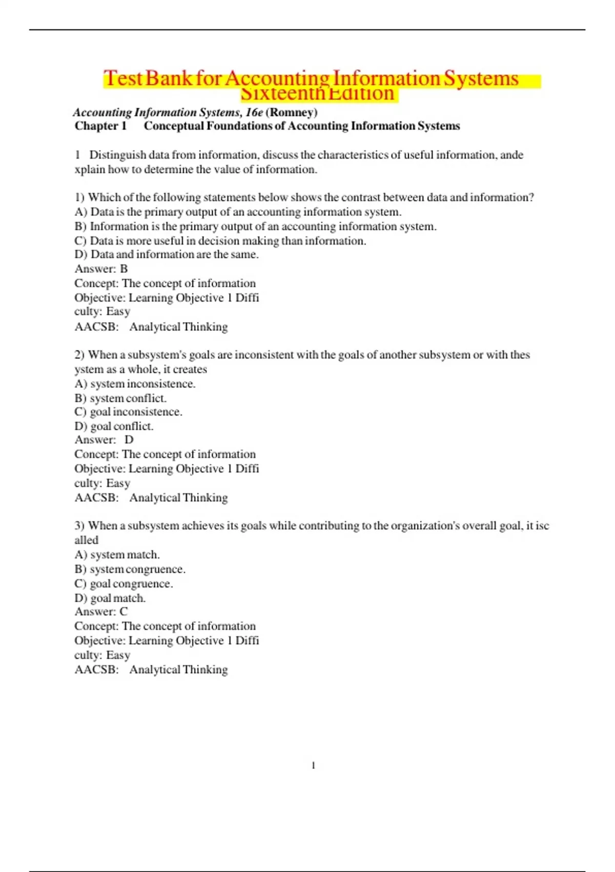 Test Bank for Accounting Information Systems, 16th Edition by Marshall B Romney