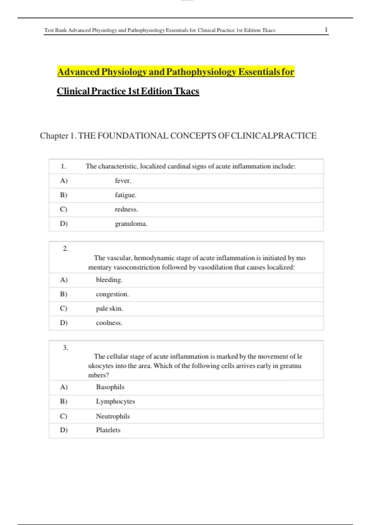 TestcBankcAdvancedcPhysiologycandcPathophysiologycEssentialscforc ClinicalcPracticec1stcEditioncTkacs 1