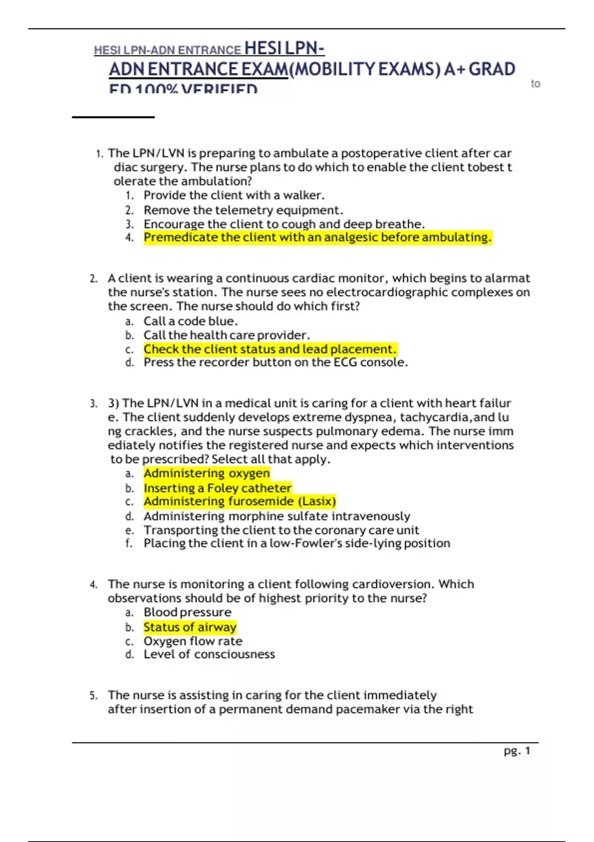 1. ThecLPN/LVNciscpreparingctocambulatecacpostoperativecclientcafterccar