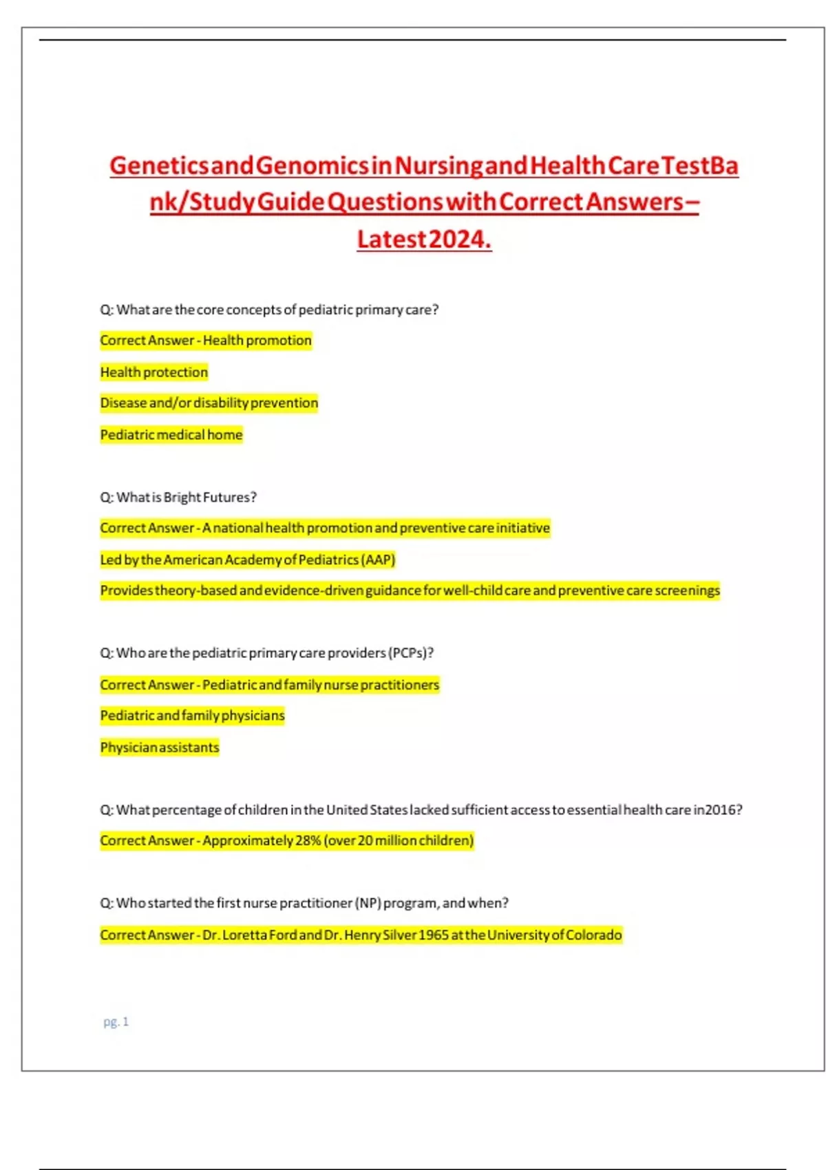 Genetics and Genomics in Nursing and Health Care 2nd Edition Beery Test Bank ALL Chapters Included ( 1-20)