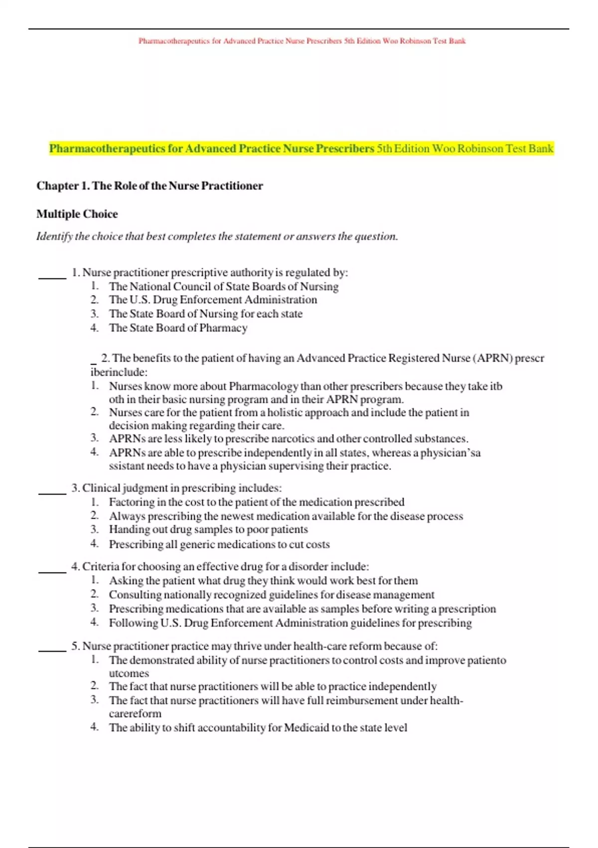 , PharmacotherapeuticscforcAdvancedcPracticecNursecPrescribersc5thcEditioncWoocRobinsoncTestcBank