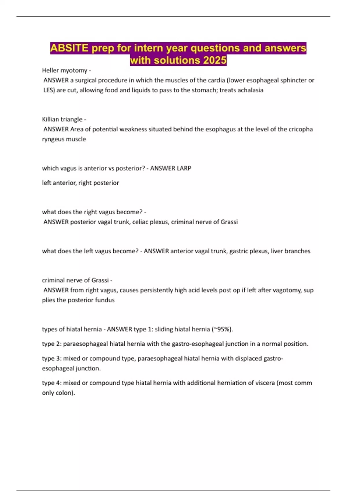 types of hiatal hernia - ANSWER type 1: sliding hiatal hernia (~95%).