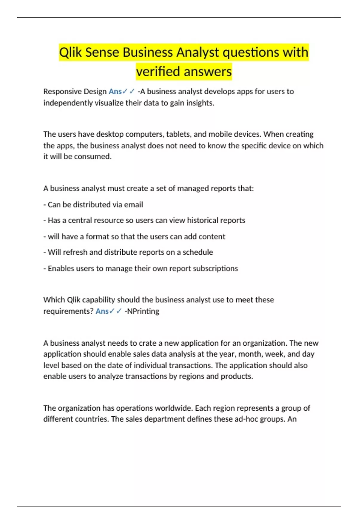Responsive Design Ans✓✓ -A business analyst develops apps for users to