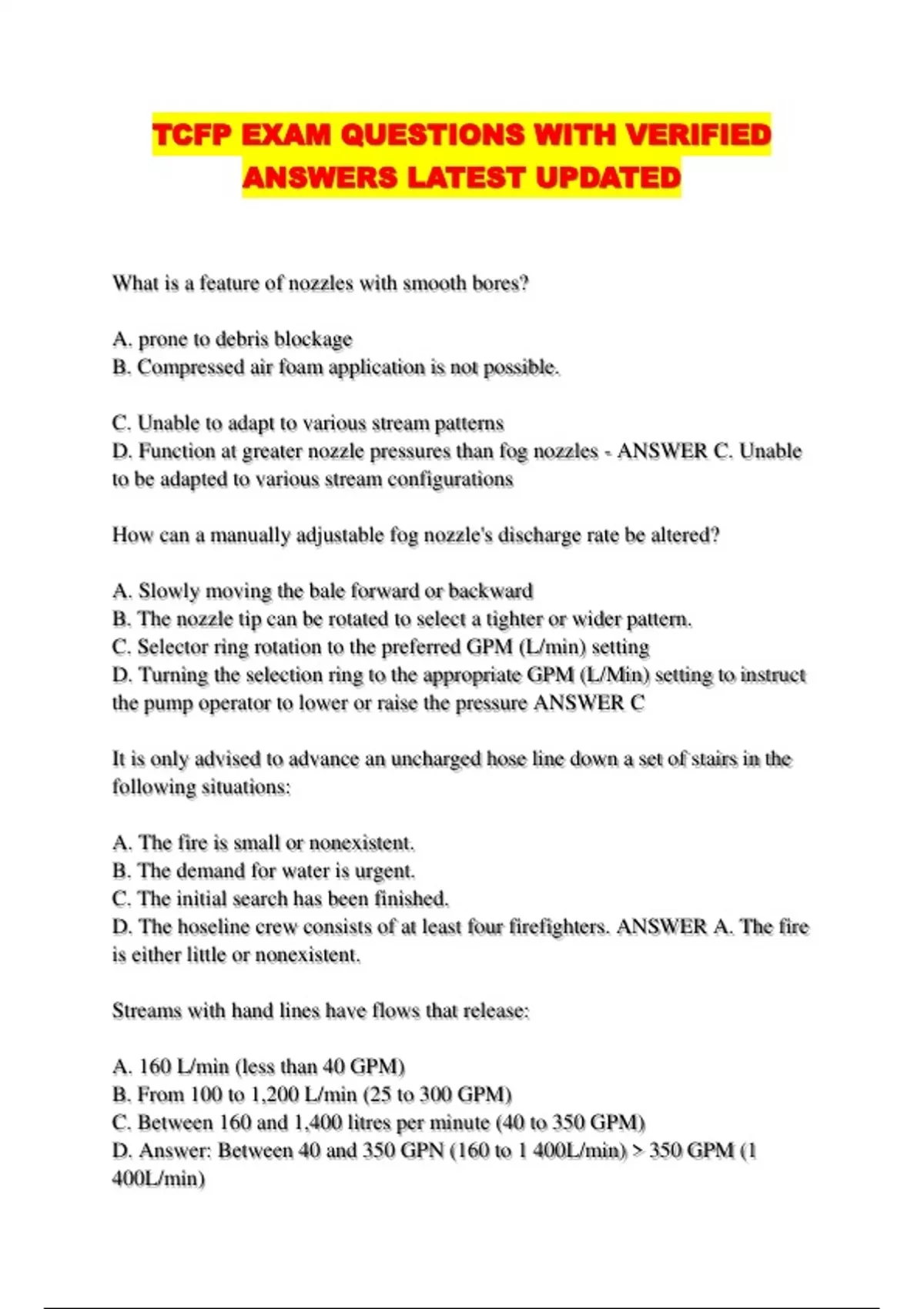 TCFP EXAM QUESTIONS WITH VERIFIED ANSWERS LATEST UPDATED