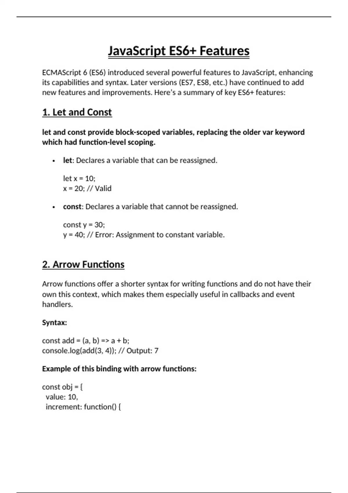 new features and improvements. Here’s a summary of key ES6+ features: