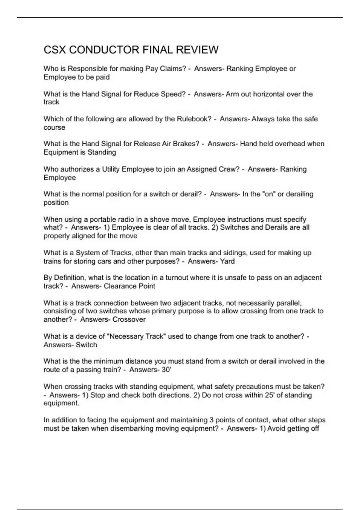 CSX CONDUCTOR FINAL REVIEW