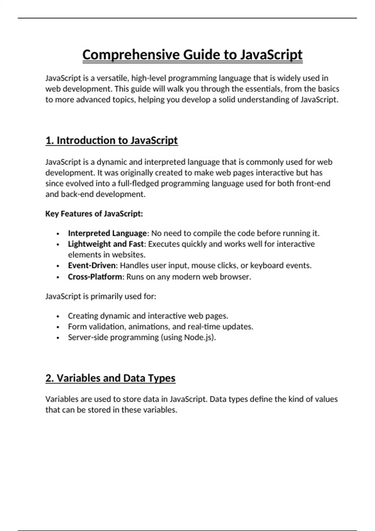 1. Introduction to JavaScript