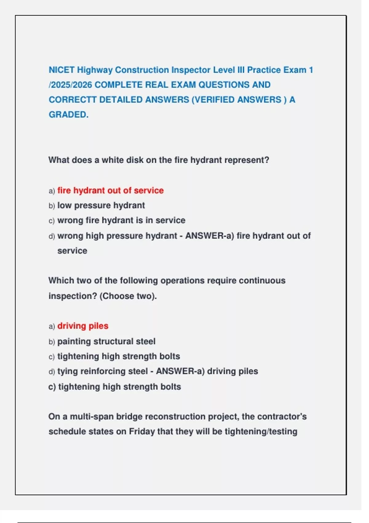 CORRECTT DETAILED ANSWERS (VERIFIED ANSWERS ) A