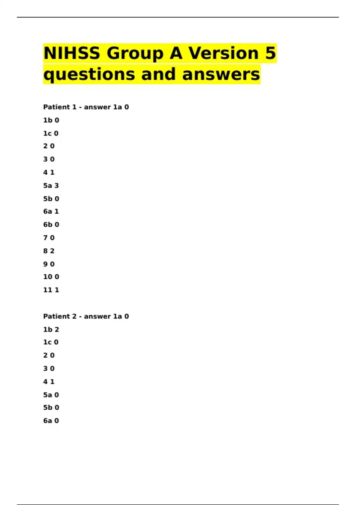 Patient 2 - answer 1a 0