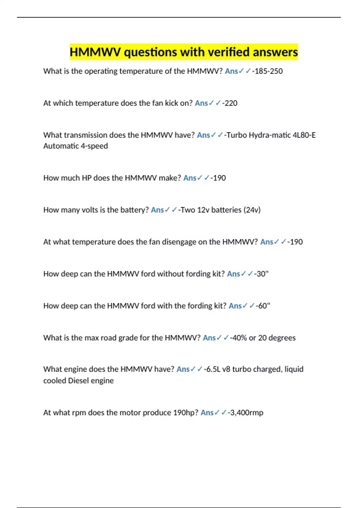 What engine does the HMMWV have? Ans✓✓-6.5L v8 turbo charged, liquid