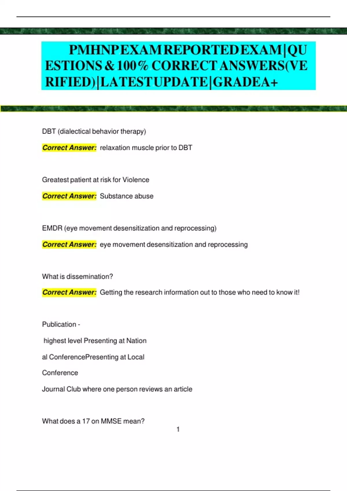 PMHNP EXAM REPORTED EXAM | QU