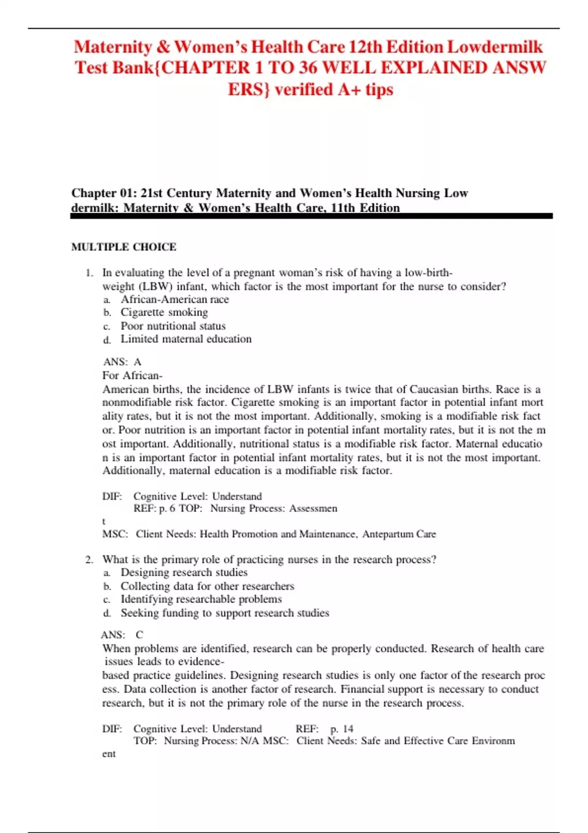 Chapter 01: 21st Century Maternity and Women’s Health Nursing Low