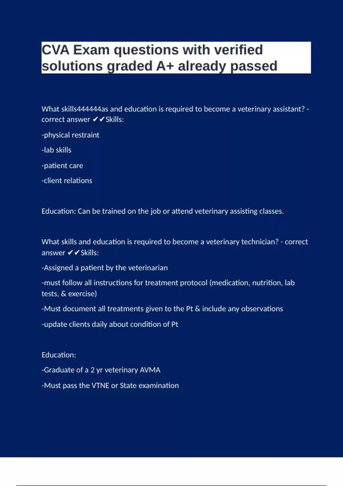 What skills and education is required to become a veterinary technician? - correct