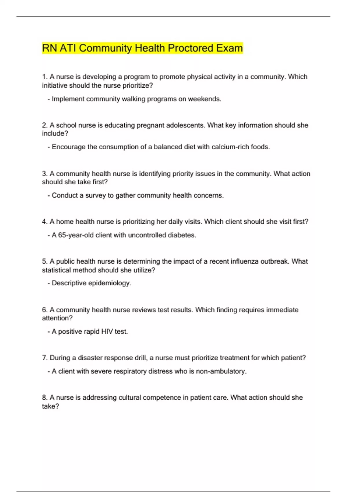 1. A nurse is developing a program to promote physical activity in a community. Which